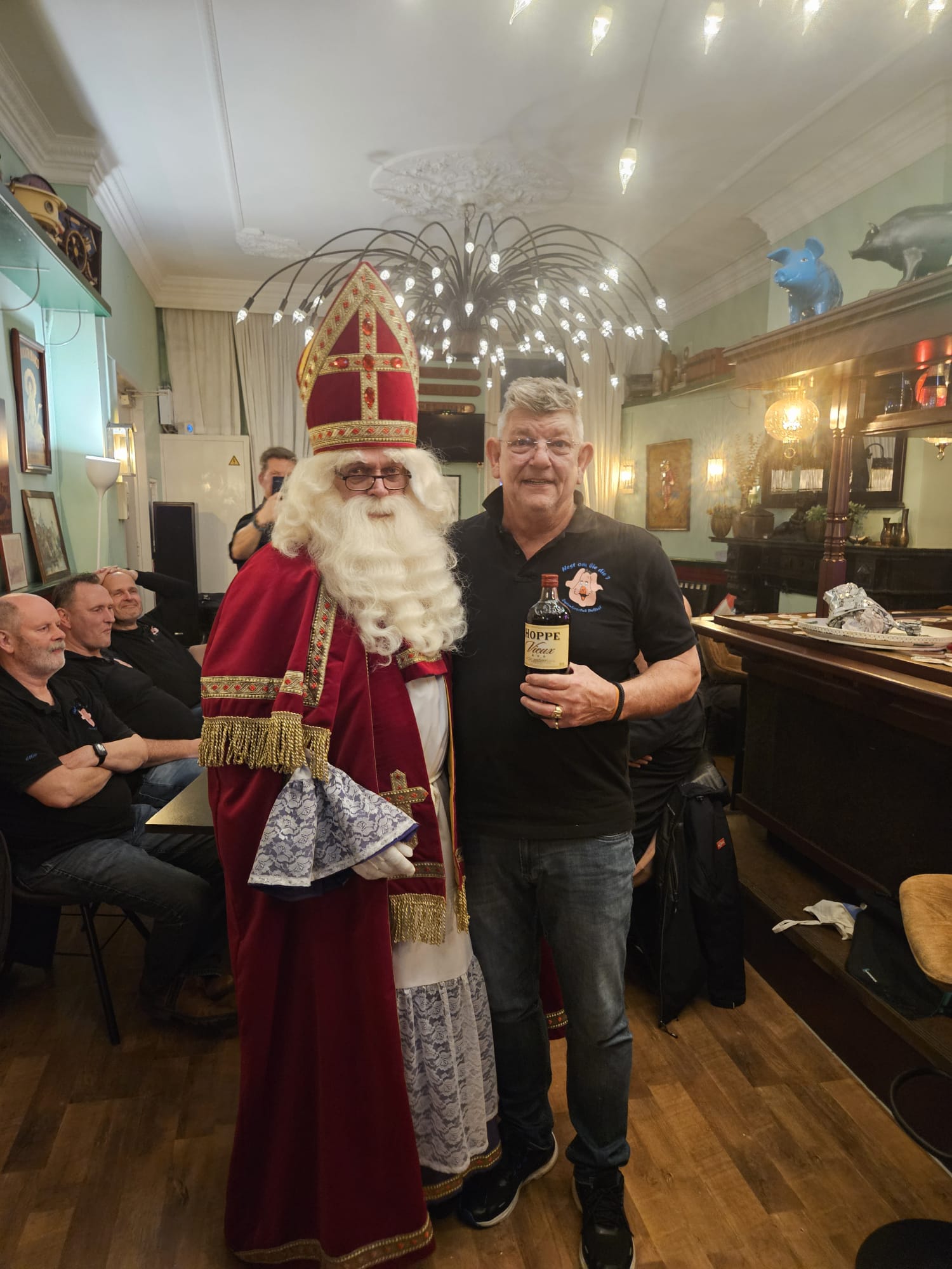 Sinterklaas Sinterklaasavond op 5 december 2025, met de aanwezigheid van de Sint zelf.Vanwege de datum waren er 9 leden (Vaders van kleine kinderen en een paar Opa's) niet aanwezig.Super gezellige avond met weer verrassende cadeaus met leuke gedichten. De Sint zelf Welkom door de voorzitter Mo Harry Fred Henk D Erik S Henk V Rick Fester Rensko Erik R Piet Eltjo Ernst Siewert Freddy Extra cadeau Erik (huwelijk) Sinterklaas (Leen)